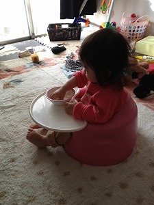 Bamboに座らせてテーブルくっつけてご飯を待つ・・・