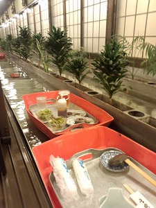 なんと料理は船で運ばれてくるパフォーマンス![]()